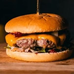 Булочка, соус гриль, салат, томат, маринованный огурец, говяжий бифштекс, чеддер, бекон.