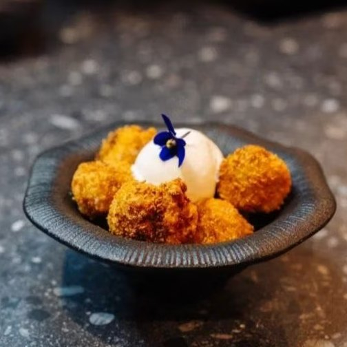 Яблоко, хрустящий кляр, соленая карамель, пломбир.