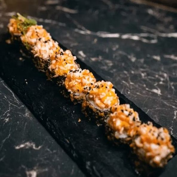 Рис, нори, крем чиз, авокадо, креветка, апельсин, темпура, свит чили.