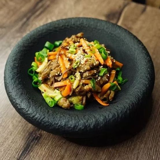 Лапша на выбор (пшеничная, рисовая, гречневая), говядина, спаржа, морковь, лайм, терияки, свит чили.