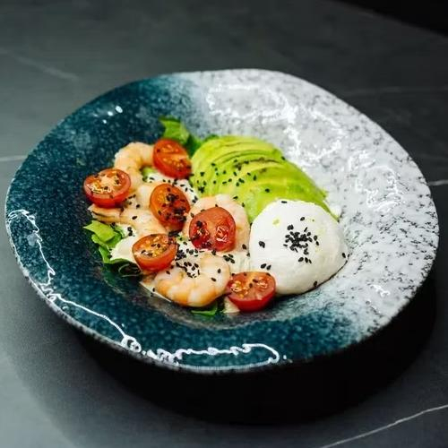 Заказать Авокадо, креветки, яйцо, листья салата, черри, соус на основе греческого йогурта.