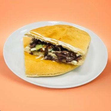 Мясо, овощи, соус, лепешка.