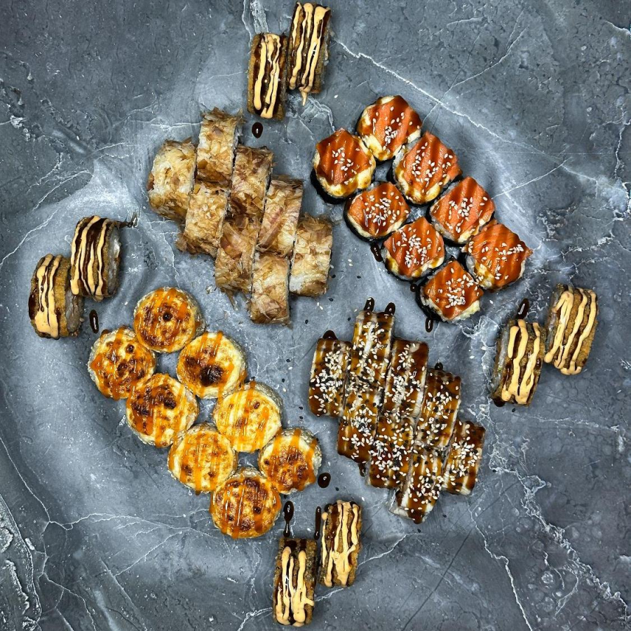 Заказать Ролл запеченный Татаки, ролл запеченный Унами, ролл Темпура Курочка с ананасами, ролл Бонито, ролл Токио.