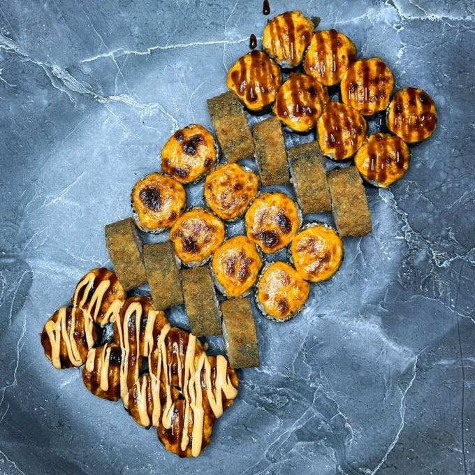 Заказать Запечённый острый ролл Ункай, запечённый острый ролл Осака, запечённый острый ролл Цурай, ролл Темпура спайси.