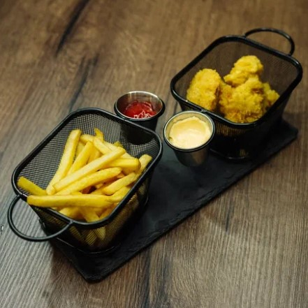 Бульон, курочка, яйцо перепелиное, наггетсы, кетчуп.