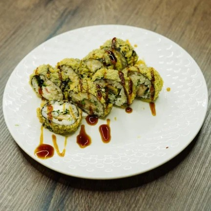 Рис, нори, крем-чиз, креветка, темпура, панко, соус свит чили.