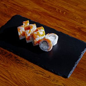 Заказать Лосось, креветка, сыр творожный, груша, соус сладкий чили, рис, водоросли нори.