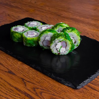 Заказать Креветка, сыр творожный, чука салат, рис, водоросли нори.