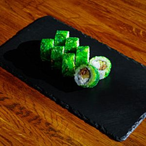 Тунец, сыр творожный, огурец, такуан, рис, водоросли нори.