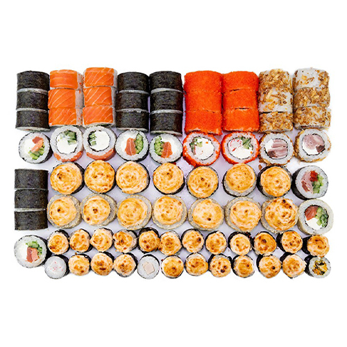 1. Запеченная классика с лососем и сыром 2. Запеченная классика с ветчиной 3. Запеченная классика с крабом 4.Классика с лососем терияки и сыром 5.Классика с лососем и сыром 6.Классика с лососем и огурцом