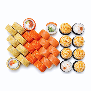 1. Филадельфия 2. Канадский 3. Филадельфия лайт 4. Классика с креветкой запеченная 5. Классика с лососем и сыром запеченная 6. Классика с лососем запеченная 7. Классика с королевской креветкой запеченная