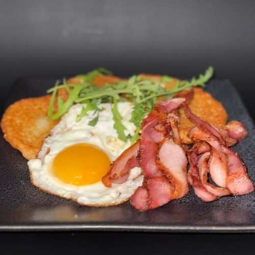 Заказать Драники с беконом и яйцом, Бар Луна