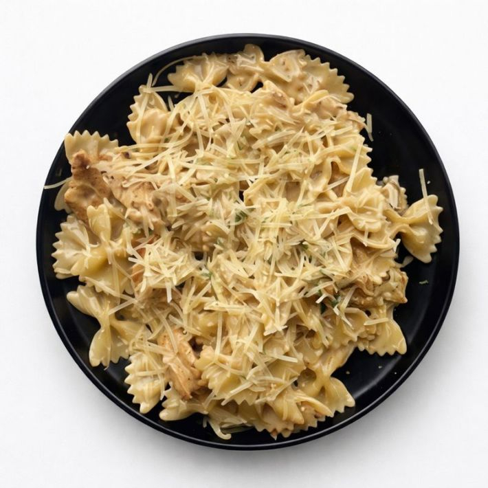 Фарфалле, курица, цукини, пармезан, французская горчица, сливки.