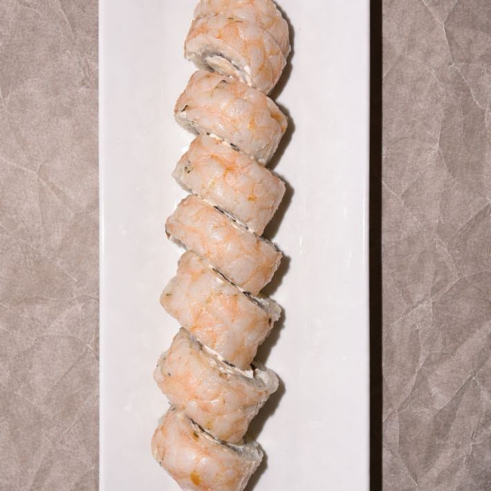 Рис, нори, сыр, огурец, креветка.