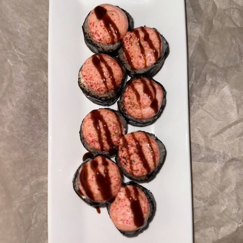 Рис, сыр, нори, шиитаки, омлет, розовый соус, унаги.