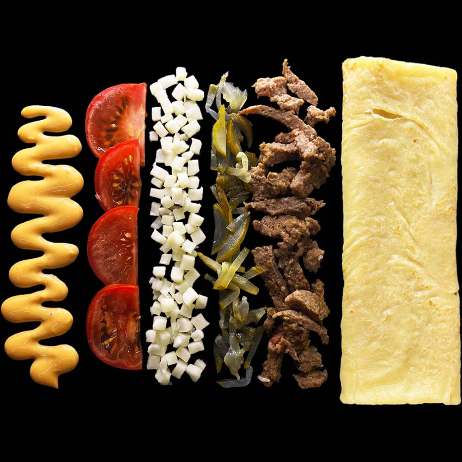 Заказать Блин, говядина, сыр, томаты, корнишоны, бургер соус.