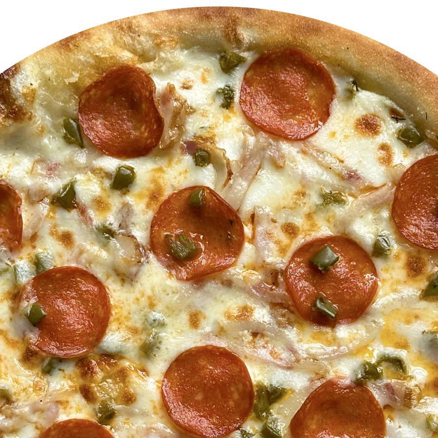 Чесночный соус, пепперони, бекон, халапеньо, сыр моцарелла.