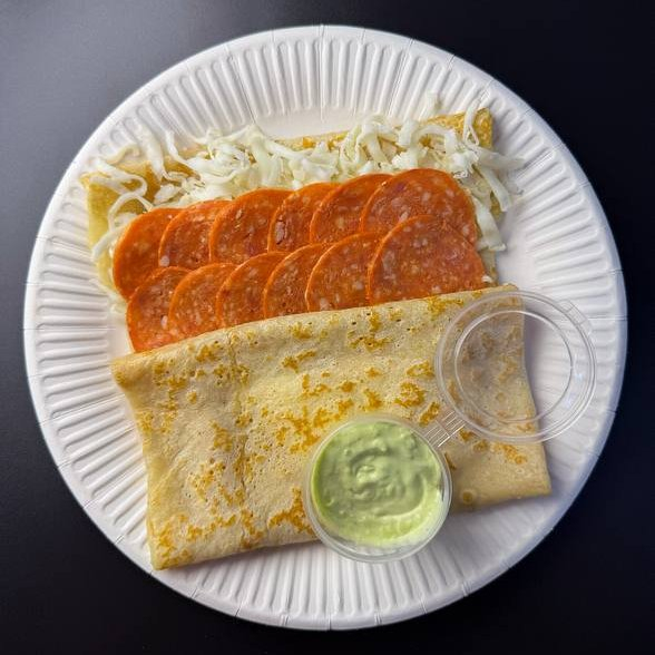 Пепперони, сыр, соус.