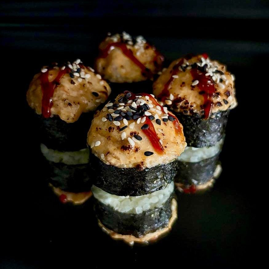 Заказать Рис, нори, сыр творожный, авокадо, сыр моцарелла, кунжут, соус унаги, соус сырный, соус барбекю, соус спайси.