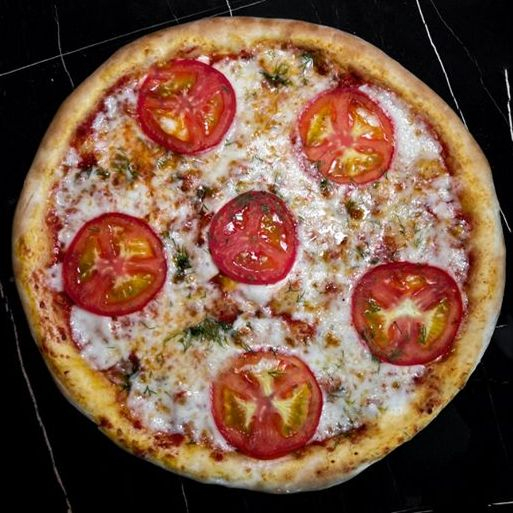 Томатная основа, сыр Моцарелла, томаты, зелень.