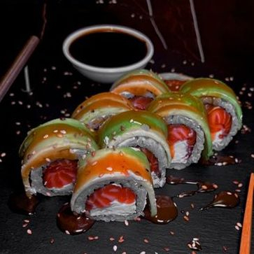 Рис, нори, сыр, тунец, огурец, спайси соус.