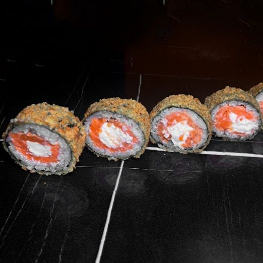 Рис, нори, лосось, сыр, тунец, огурец, кляр (мука темпура, вода), сухари панировочные Панко.