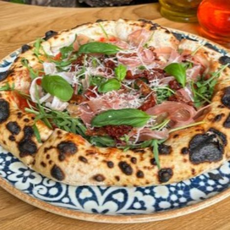 Томаты пелати, моцарелла, парма, вяленые томаты, пармезан, рукола.