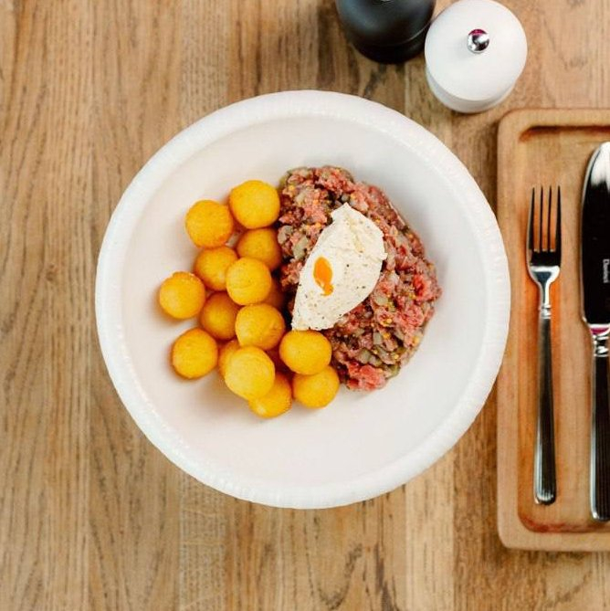 Тар-тар из говядины с картофельными крокетами