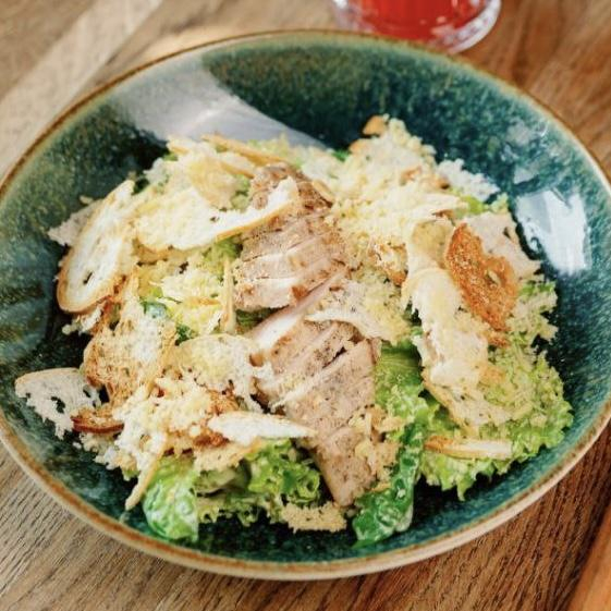 Заказать Филе цыпленка су-вид, салат ромэн, салат лола бьенда, черри, соус цезарь (домашний майонез, яйцо, каперсы, анчоусы, соус ворчестер, пармезан) крутоны, пармезан.