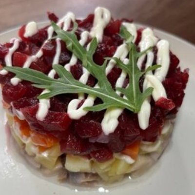 Заказать Картофель вареный, морковь вареная, огурец консервированный, колбаса вареная, яйца вареные, горошек зелёный консервированный, майонез.