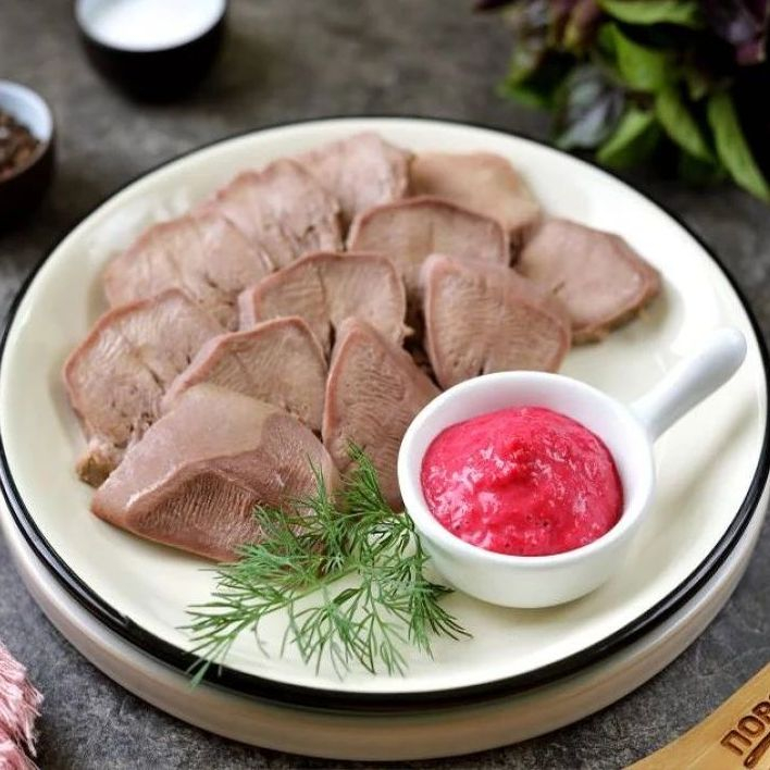 Язык отварной с хреном