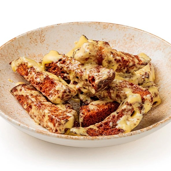 Хрустящие гренки из хлеба с чесночно-сырным соусом M