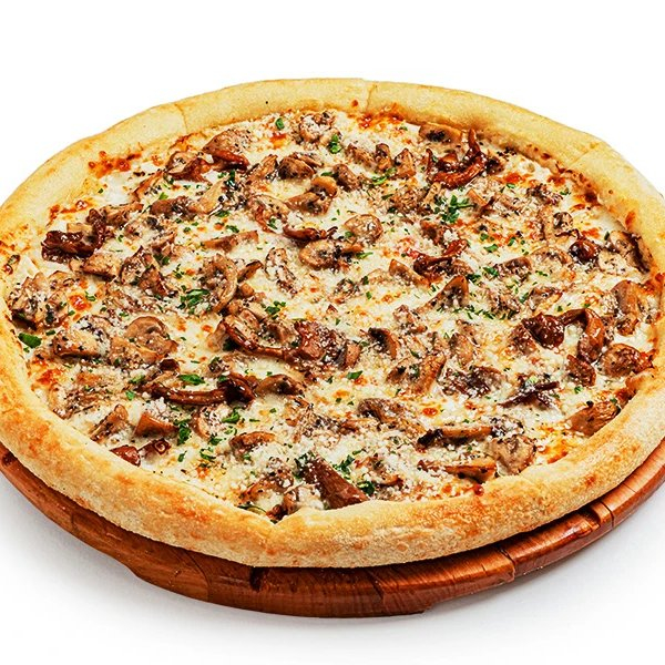 Заказать Сыр Моцарелла, шампиньоны, лук, сливочное масло, консервированные опята, трюфельный мёд, сыр Пармезан, зелень.
