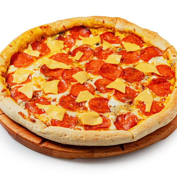 Заказать Сыры: Моцарелла, Дорблю, Проволоне, Фета, Чеддер, сырный соус, колбаски пепперони, масло розмариновое.