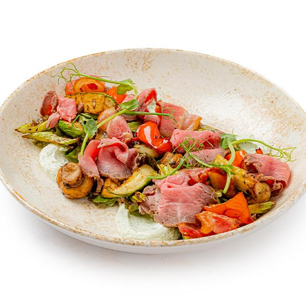 Теплый салат с ростбифом и сливочным сыром