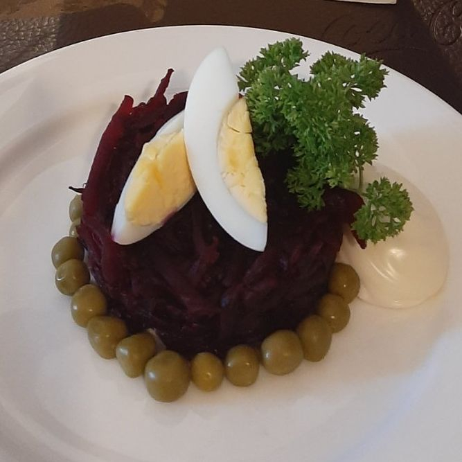 Заказать Свекла, горошек, лук, яйца, соль, майонез, зелень. + контейнер для салата