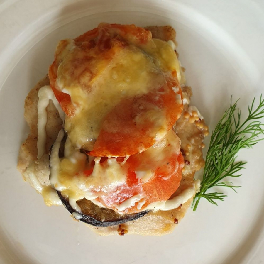 Филе куриное, баклажаны, помидоры, майонез, сыр, специи. + ланч бокс Эко.