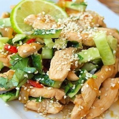 Заказать Огурец св., капуста пекинская, филе куриное, гренки, заправка соевая.