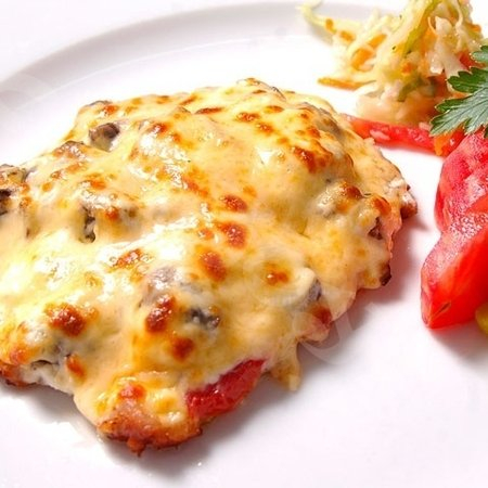 Заказать Мясо по-французски из курицы с грибами, дольки картофельные, Кафе Трактир