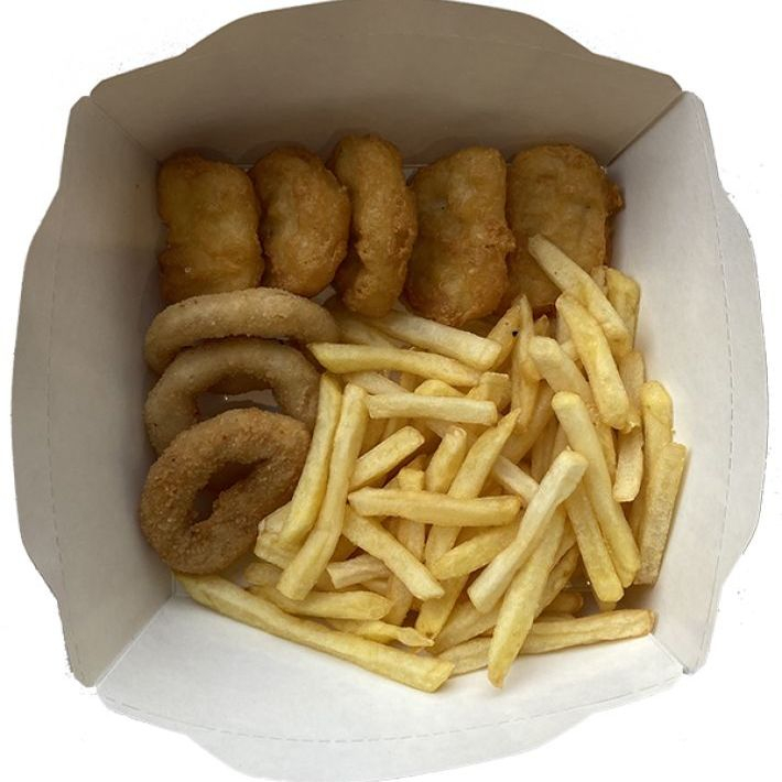 Картофель фри, наггетсы 5шт, луковые кольца 3шт.
