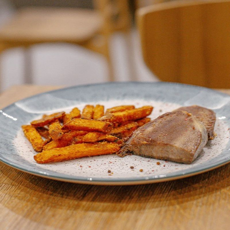 Язык на гриле с бататом фри