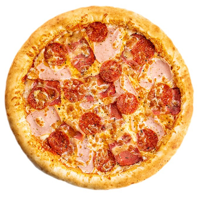 Заказать Томатный соус, сыр моцарелла, пепперони, ветчина, грудинка, смесь итальянских трав.