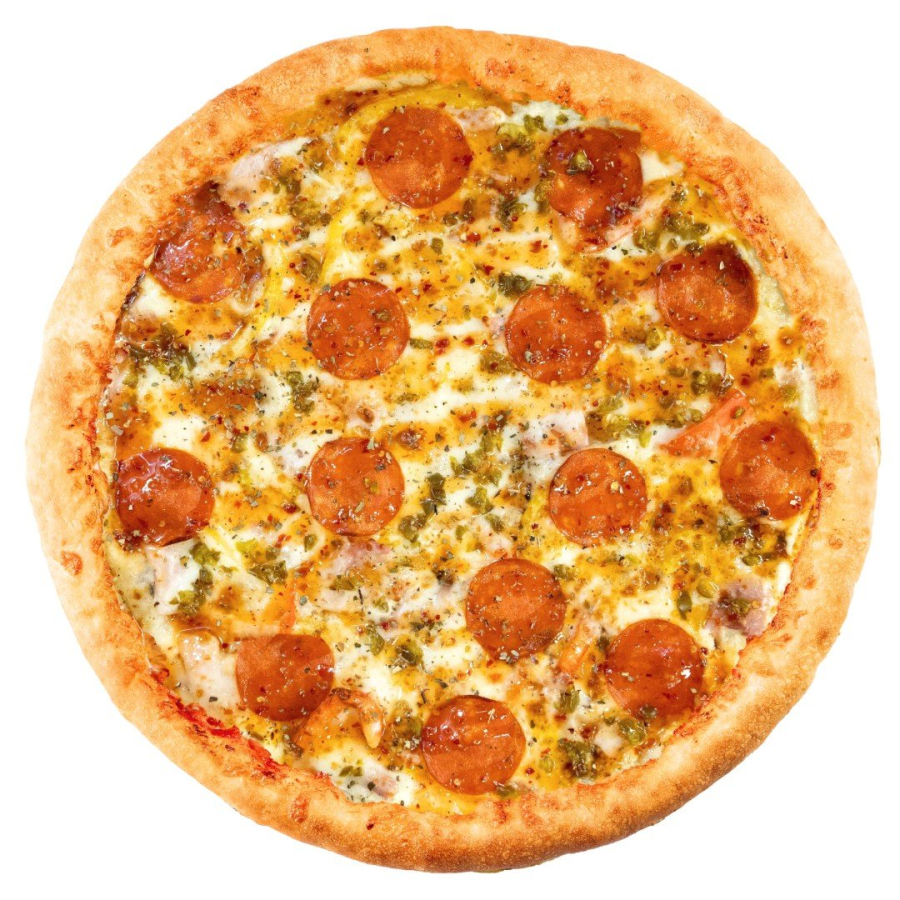 Заказать Чесночный соус, сыр моцарелла, пепперони, грудинка, перец халапеньо, кисло-сладкий соус чили, сладкий перец, перец чили (посыпка), смесь итальянских трав.