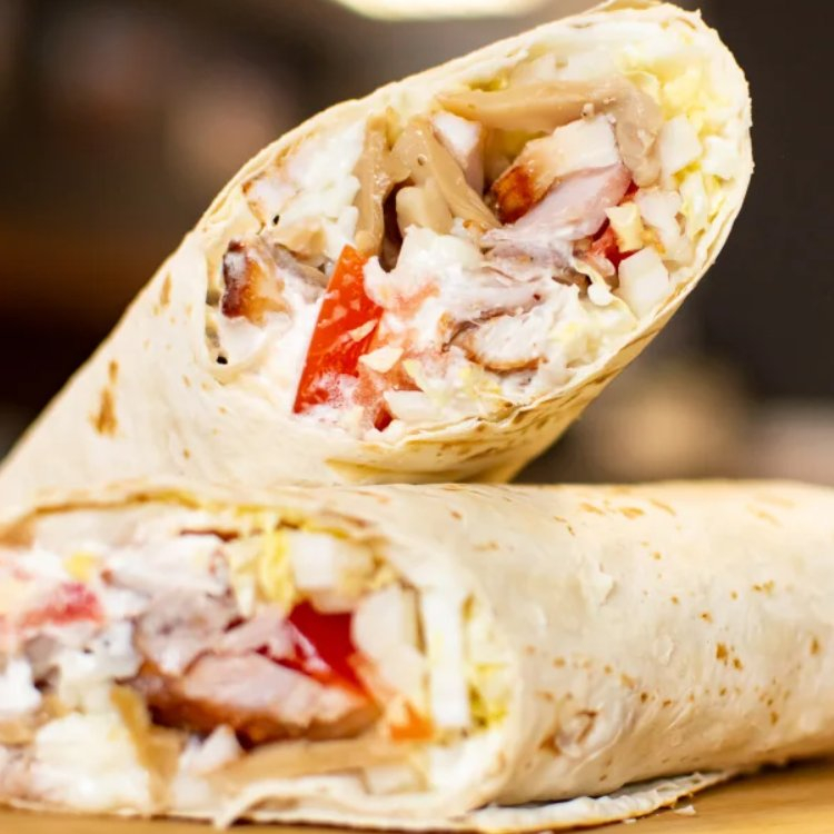 Лаваш, курица, соус чесночный, капуста, огурцы, помидоры, соус BBQ.