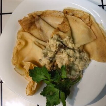 Заказать Блины с соусом из белых грибов, Домашняя Трапеза