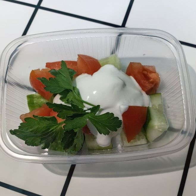 Огурец, томат, сметана.