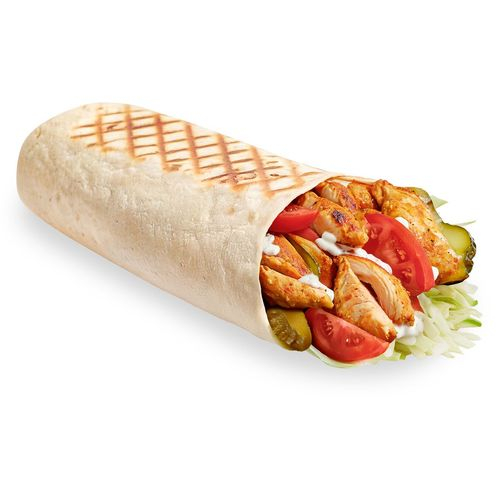 Заказать Лаваш, курица, соленый огурчик, помидор, капуста, фирменный соус, томатный соус, специи.