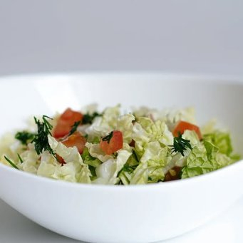 Печень куриная в сметане, гречневая каша, салат с капусты, помидоров и майонеза.