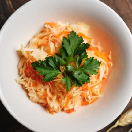 Легкий салат из б/к капусты и моркови с растительным маслом.