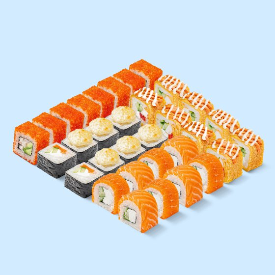 Калифорния, Цезарь BIG, Запечённый с лососем, Филадельфия BIG.